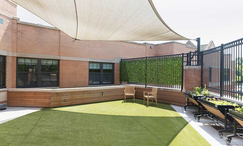 The therapeutic outdoor space and garden room, located on the newly renovated second floor at Southington Care Center, enables residents to make a direct connection to nature and natural daylight which studies have proven to enhance physical, mental and emotional well-being.